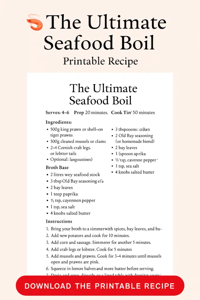 Before you even light the stove, picture the scene: friends or family gathered in the garden or around your kitchen island, bibs on, napkins in hand, laughter in the air. The seafood boil is about theatre and togetherness — it’s hands-on, it’s messy, and it’s gloriously interactive.